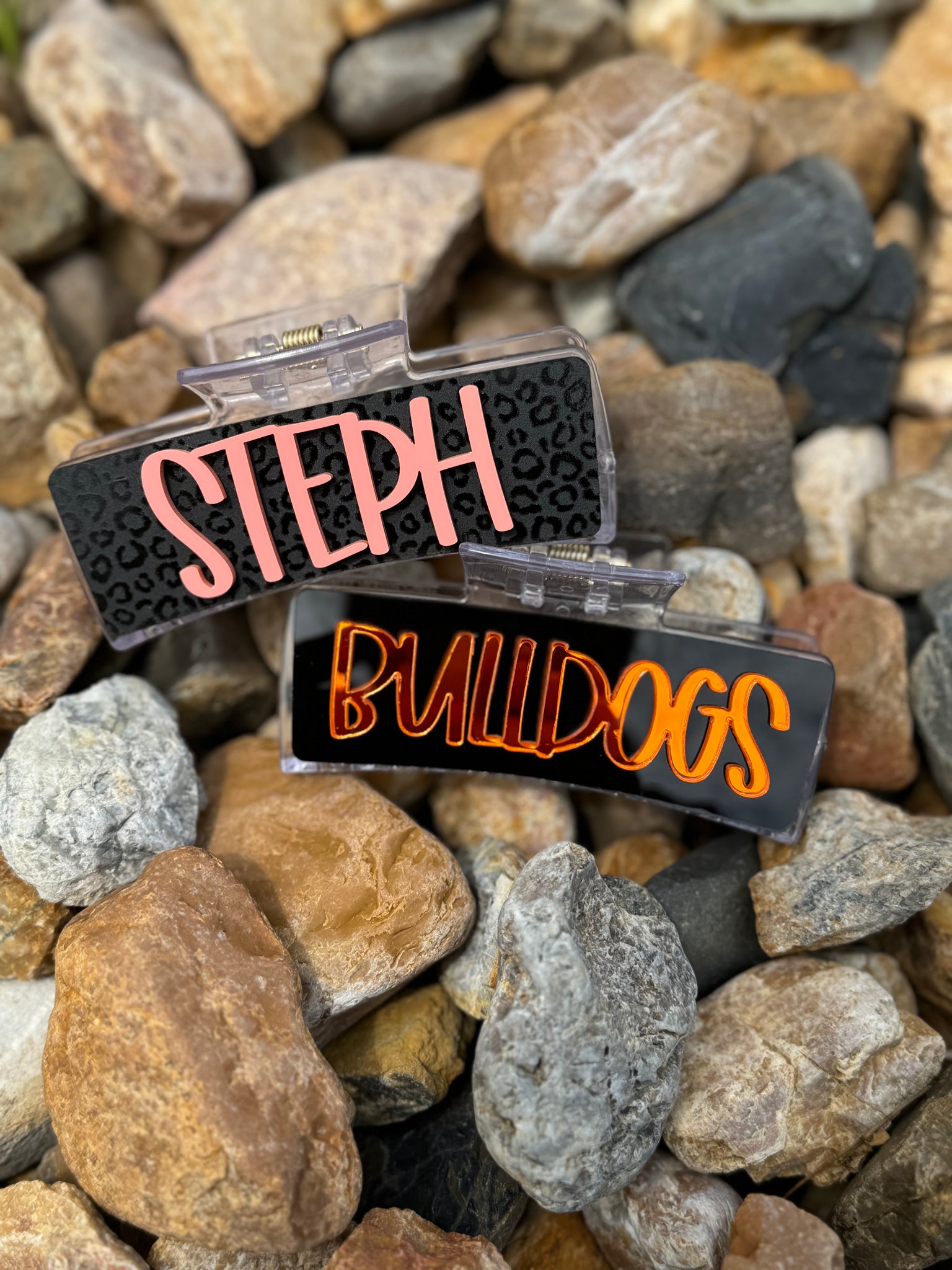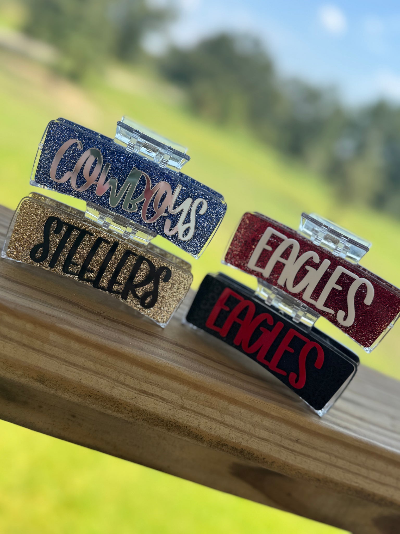 Our large acrylic claw clips are the perfect blend of cute and functional — designed to hold your hair securely while showing off your favorite team in a chic way.